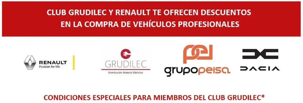 Grupo Peisa y Grudilec te ofrecen descuentos especiales en la compra de vehículos profesionales del Grupo Renault, ¡solo por ser miembro del Club Grudilec!